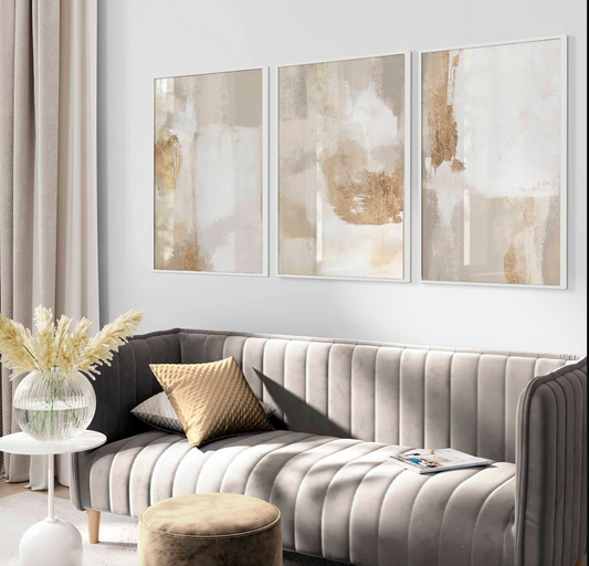 Set 3 Cuadros Abstractos , Beige dorados