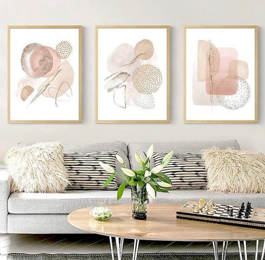 Set de 3 Cuadros abstractos neutros
