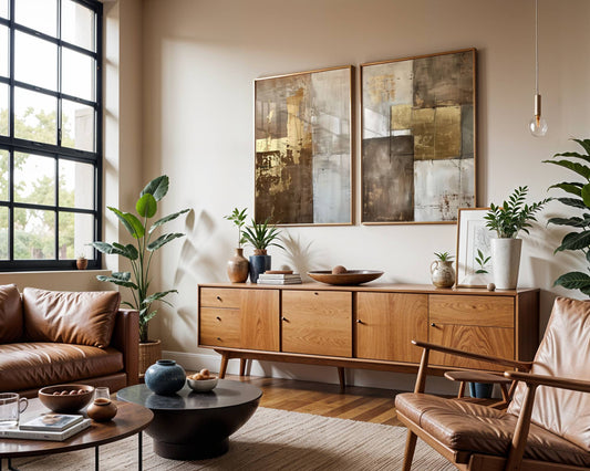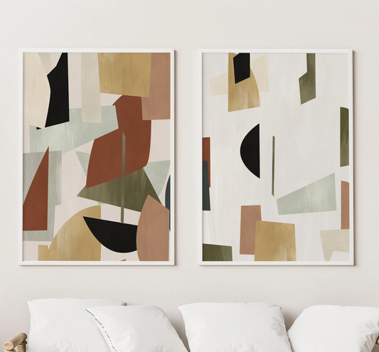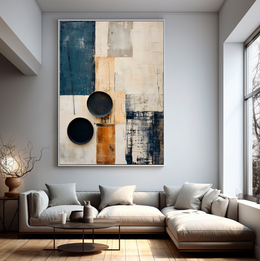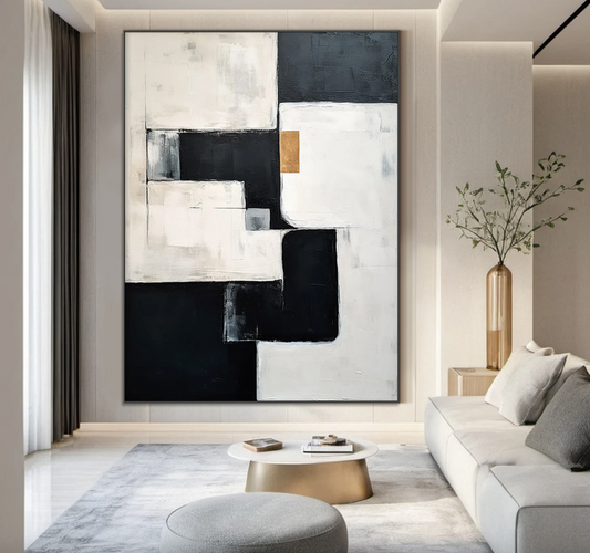 Cuadro Pintado a Mano Oleo , abstracto geométricos Blancos y Negros y tono tierra