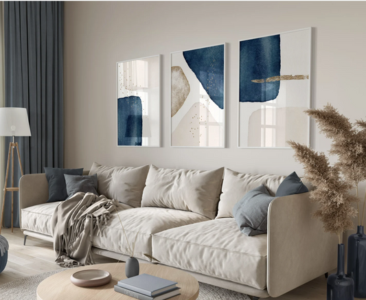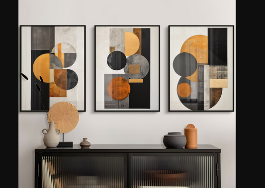 Set 3 Cuadros abstractos geometricos cubos , neutros
