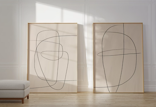 Set 2 Cuadros abstractos beige y neutros estilo minimalista