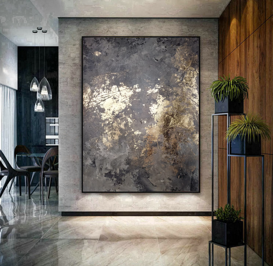 Cuadro Pintado a Mano textura , Dorado y grises Abstracto