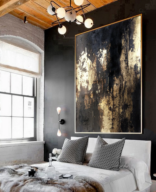 Cuadro Pintado a Mano textura , Dorado y Negro Abstracto