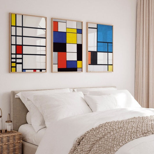 Set 3 Cuadros abstractos modernos estilo piet mondrian