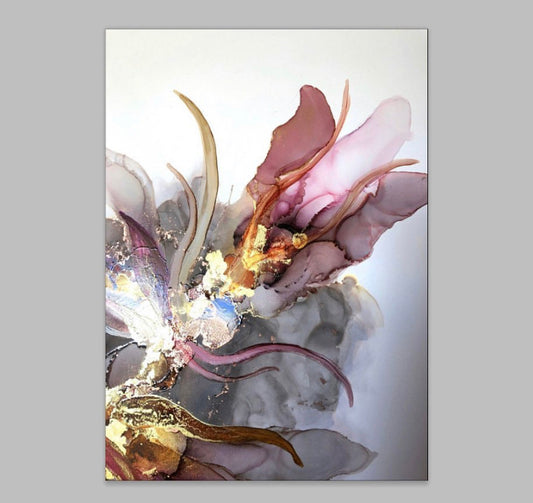 Set 3 Cuadros abstractos tinta de alcohol forma de flores