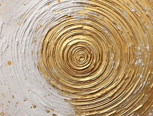 Cuadro Pintado a Mano textura , Dorado sobre Blanco