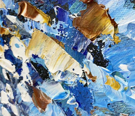 Cuadro Pintado a Mano textura , abstracto turquesa , dorado y grises 2