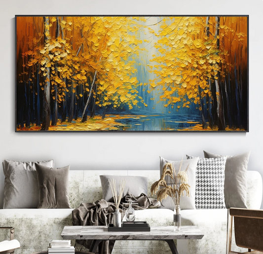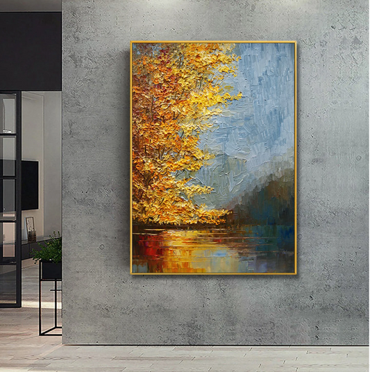 Cuadro Pintado a Mano textura, Paisaje Otoñal
