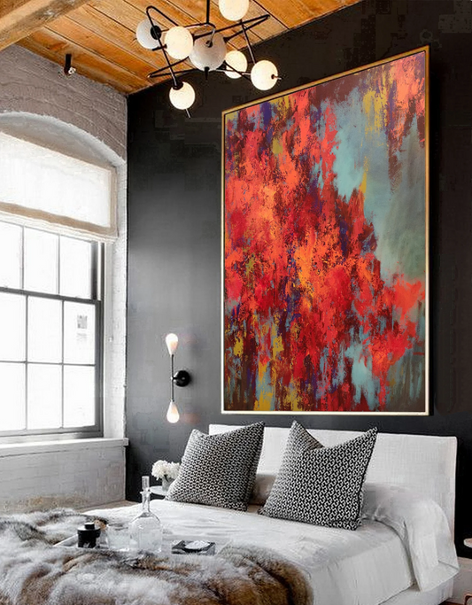 Cuadro Pintado a Mano textura , Rojos y turquesas