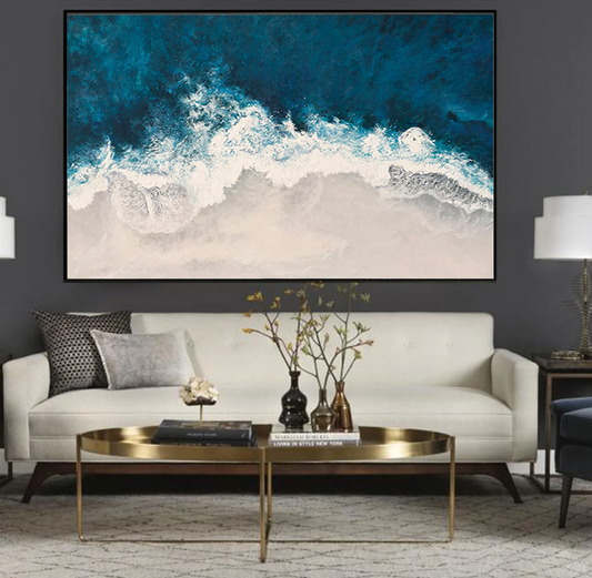 Cuadro Pintado a Mano textura , Ondas arte Wabi-Sabi