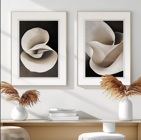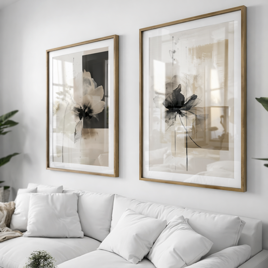 Set 2 Cuadros beige y flores, botanico