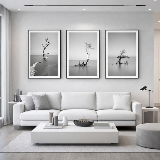 Set 3 Cuadros Botanicos , Arboles en lago