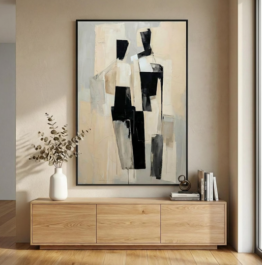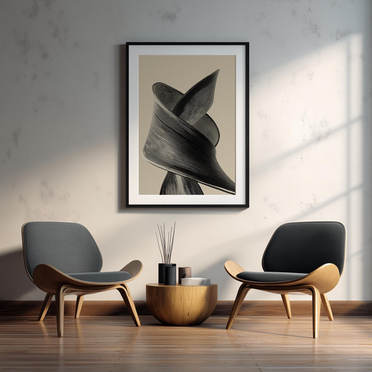 Cuadro Abstracto forma minimalista post moderno , blanco y negro