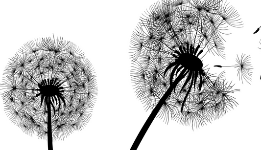set 2 Cuadros botanico diente de leon, blanco y negro