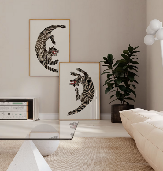 Set 2 Cuadros Asiaticos , Animales tigres estilo arte ukiyo japones