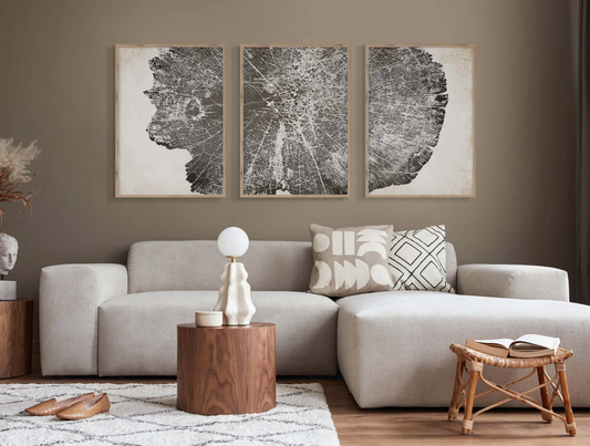 Set 3 Cuadros botánicos tronco anillo de arbol grande