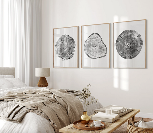 Set 2 Cuadros botanico anillos de arbol , neutros