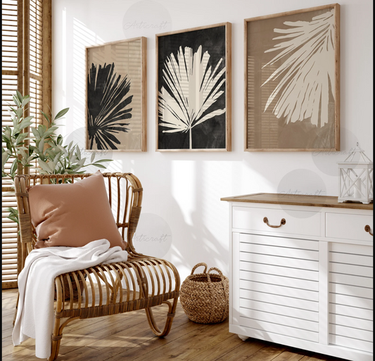 Set 3 Cuadros botánicos, Neutros , hojas de palma