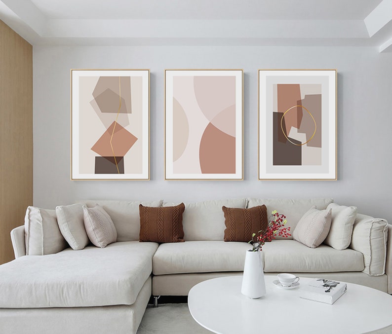 Set de 3 cuadros abstractos geometricos en tonos crema