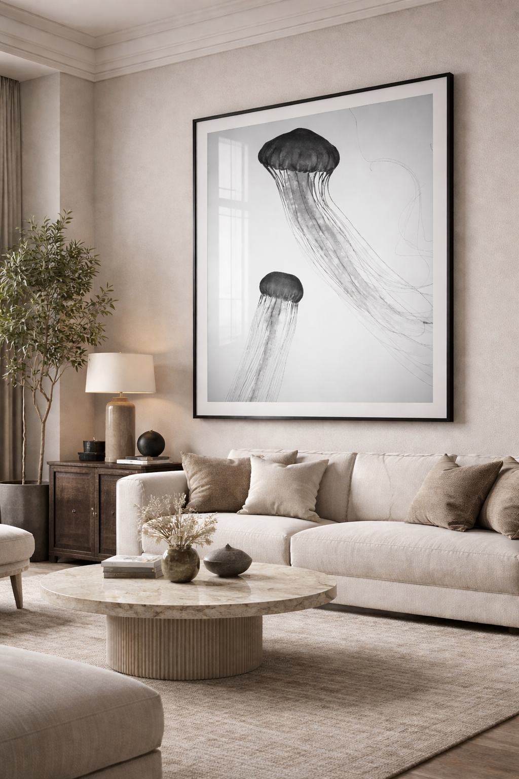Cuadro de Animales, Medusas blanco y negro