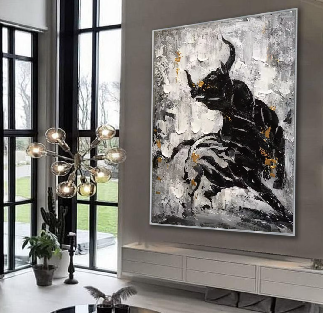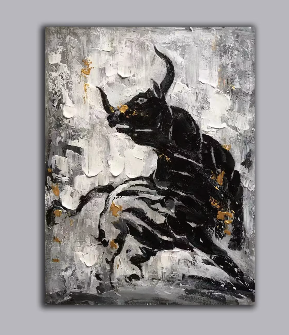 Cuadro Pintado a Mano en oleo Texturizado , Toro