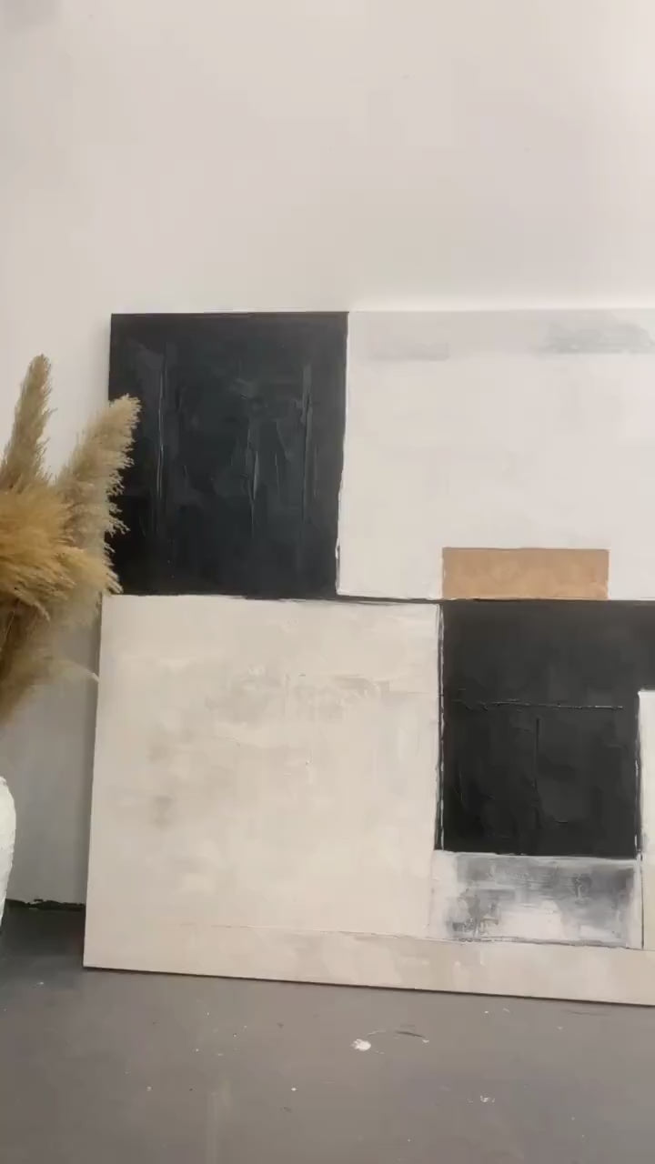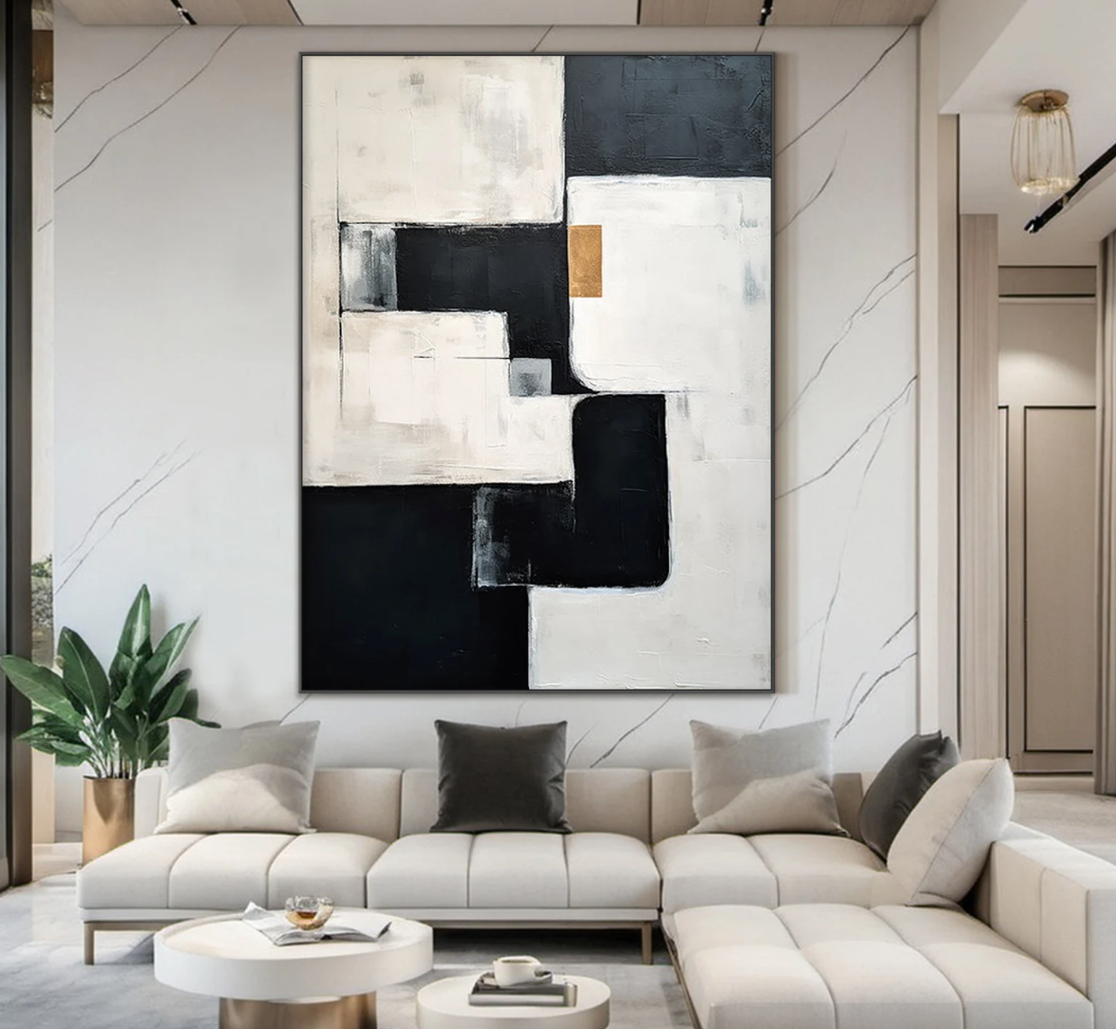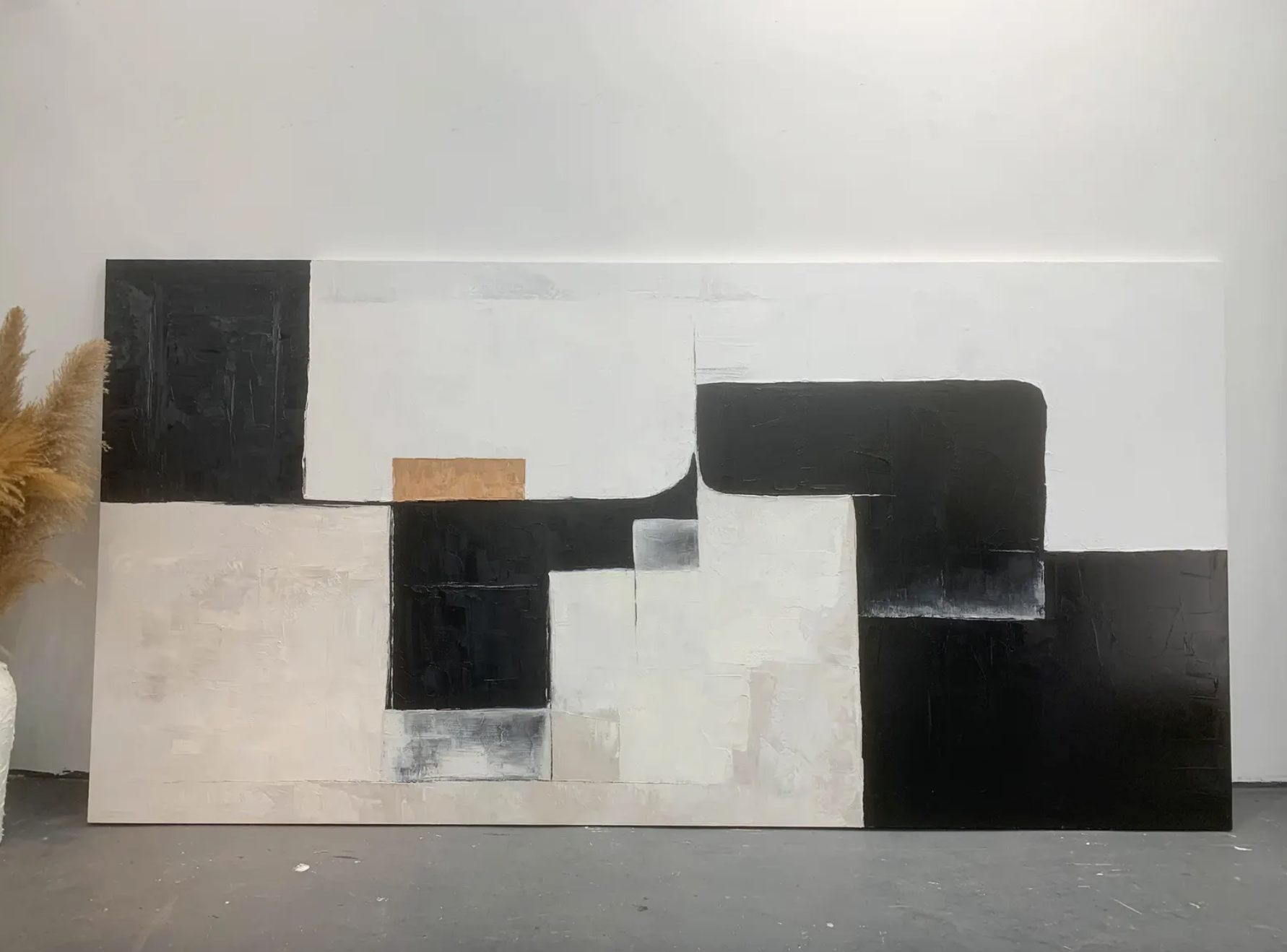 Cuadro Pintado a Mano Oleo , abstracto Negros y Blancos con fuente color