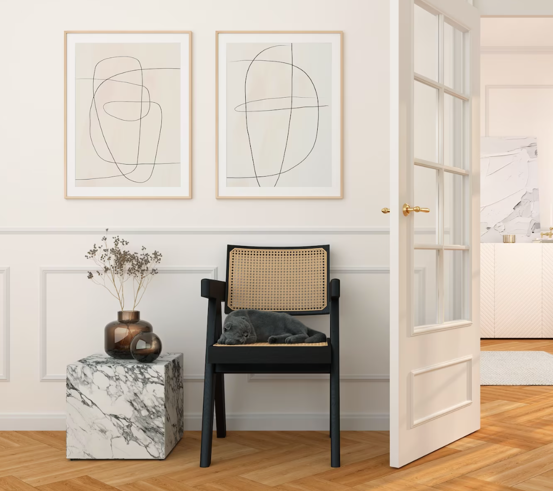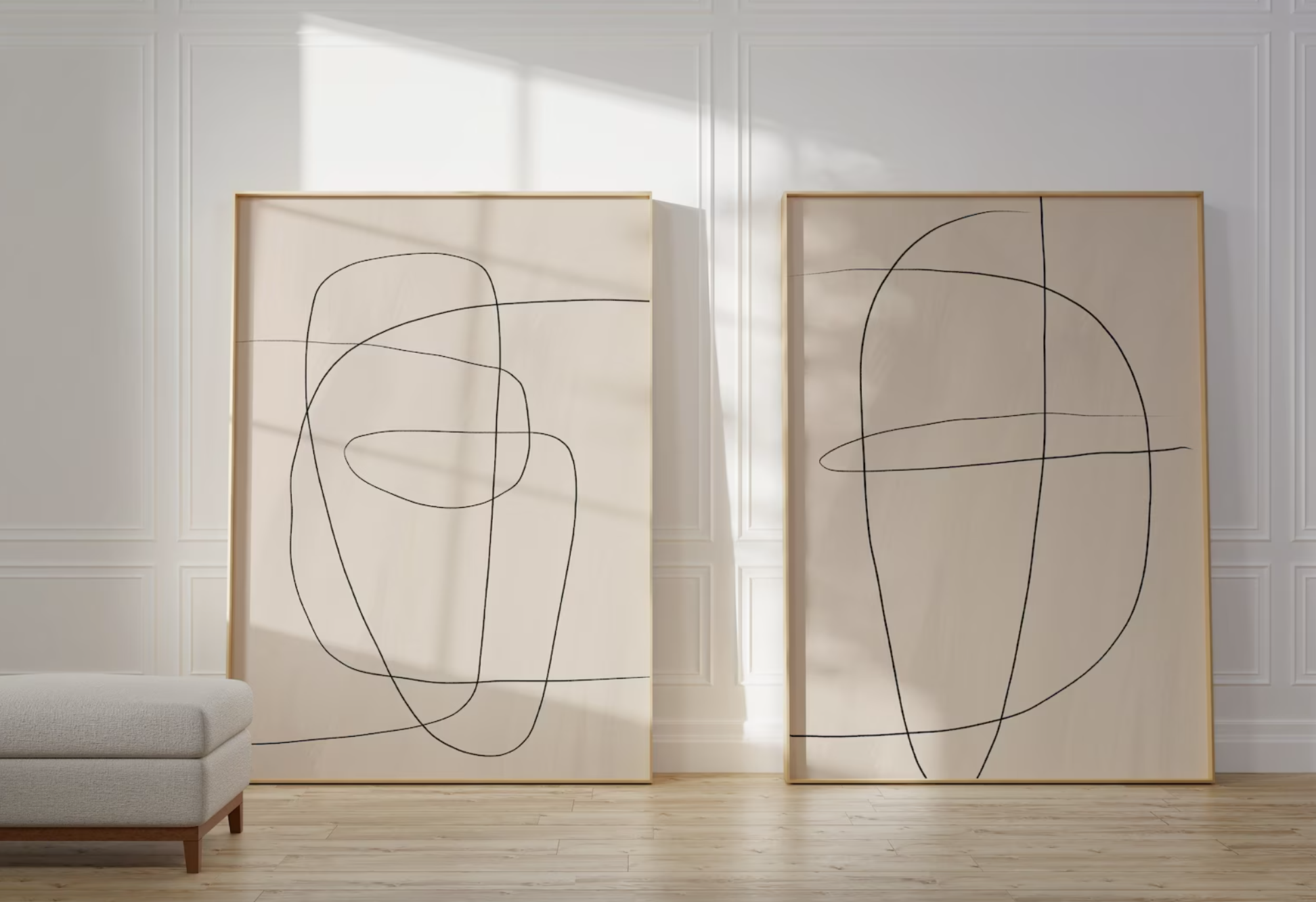 Set 2 Cuadros abstractos beige y neutros estilo minimalista