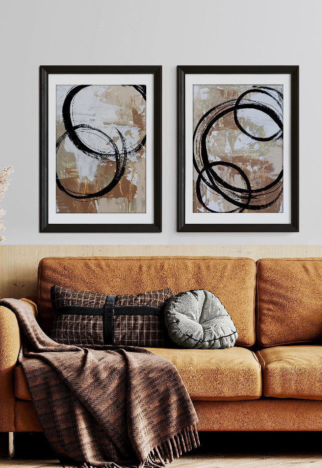 Set 2 Cuadros abstractos círculos en terracota