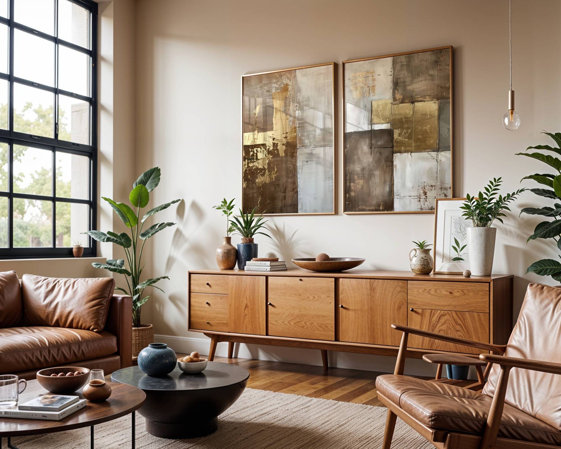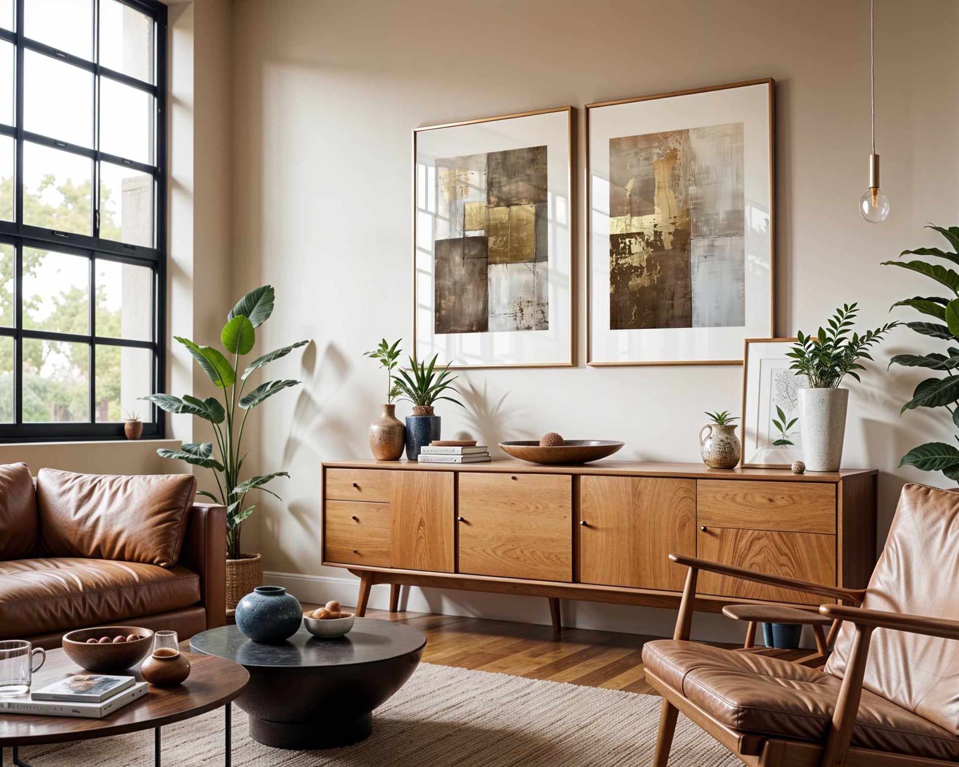 Set 2 Cuadros Abstractos Dorados y Beige