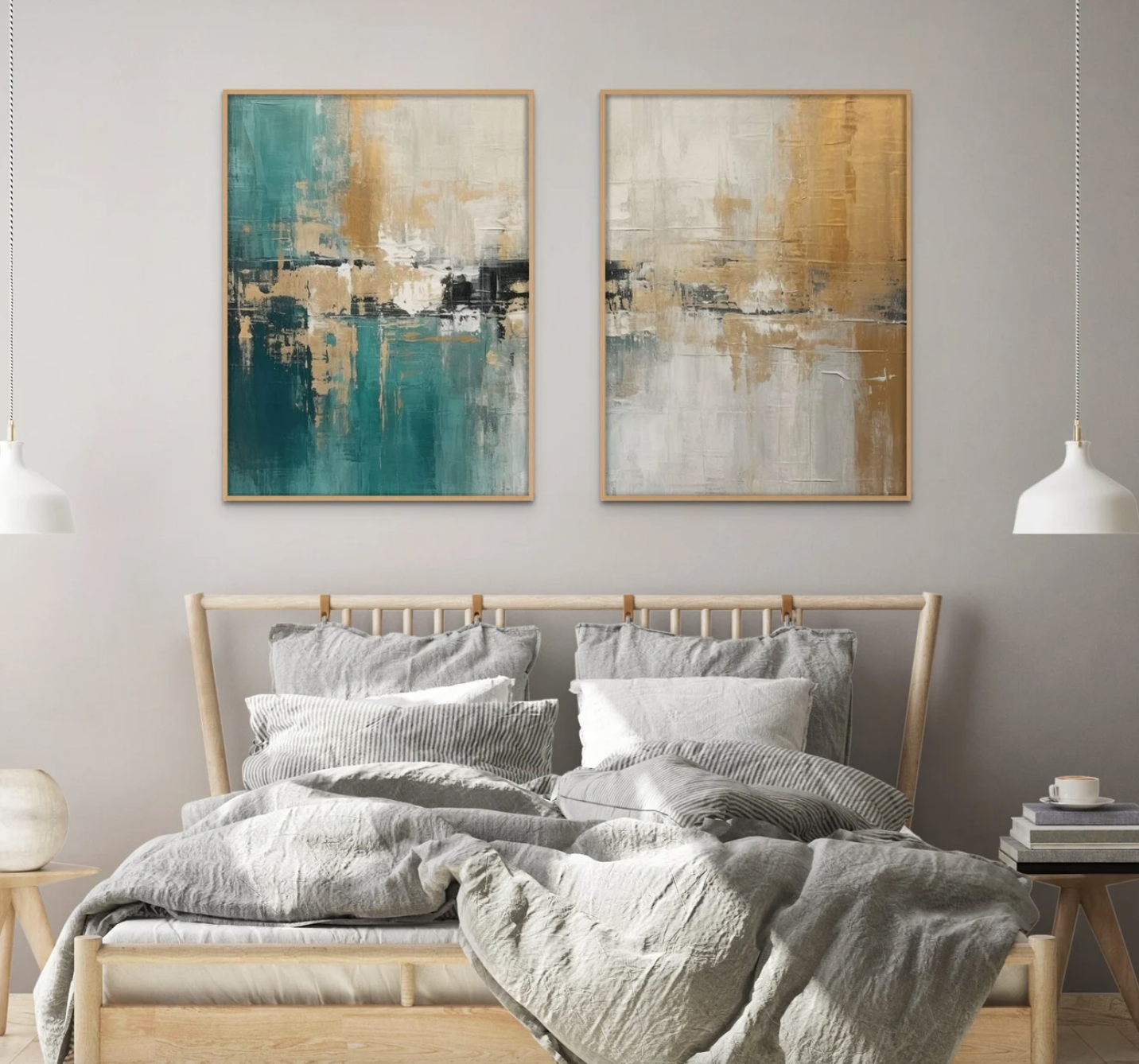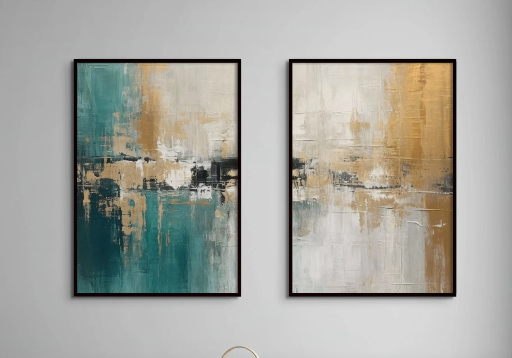 Set 2 Cuadros abstractos oro y turquesa