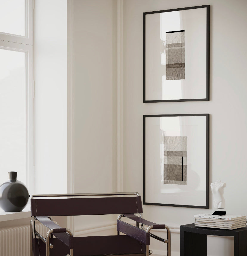 Set de 2 cuadros modernismo abstracto , pocos tonos en linea minimalista