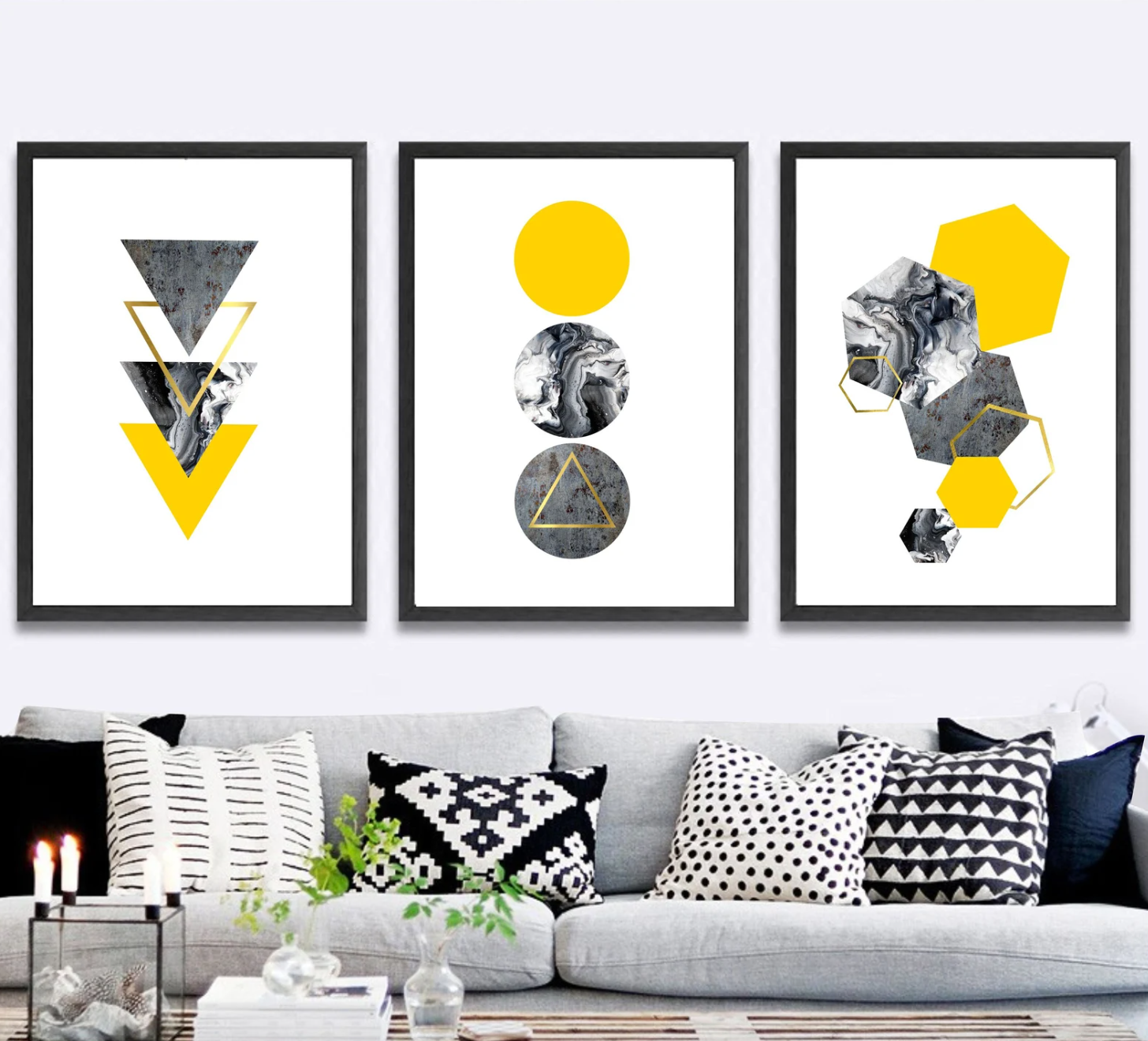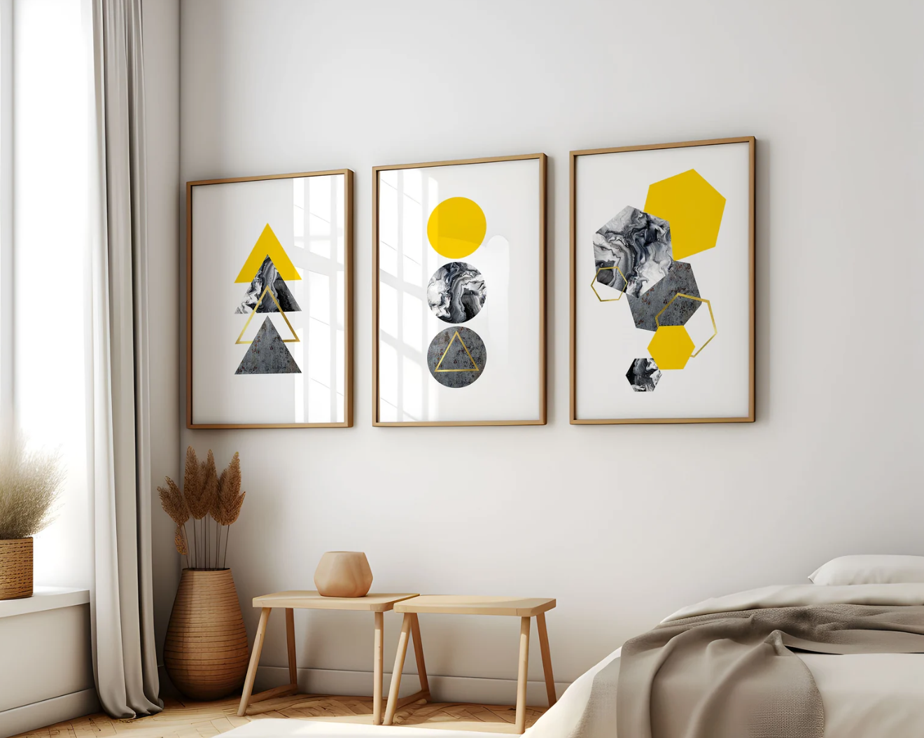 Set 3 Cuadros abstractos Nordicos, Amarillos