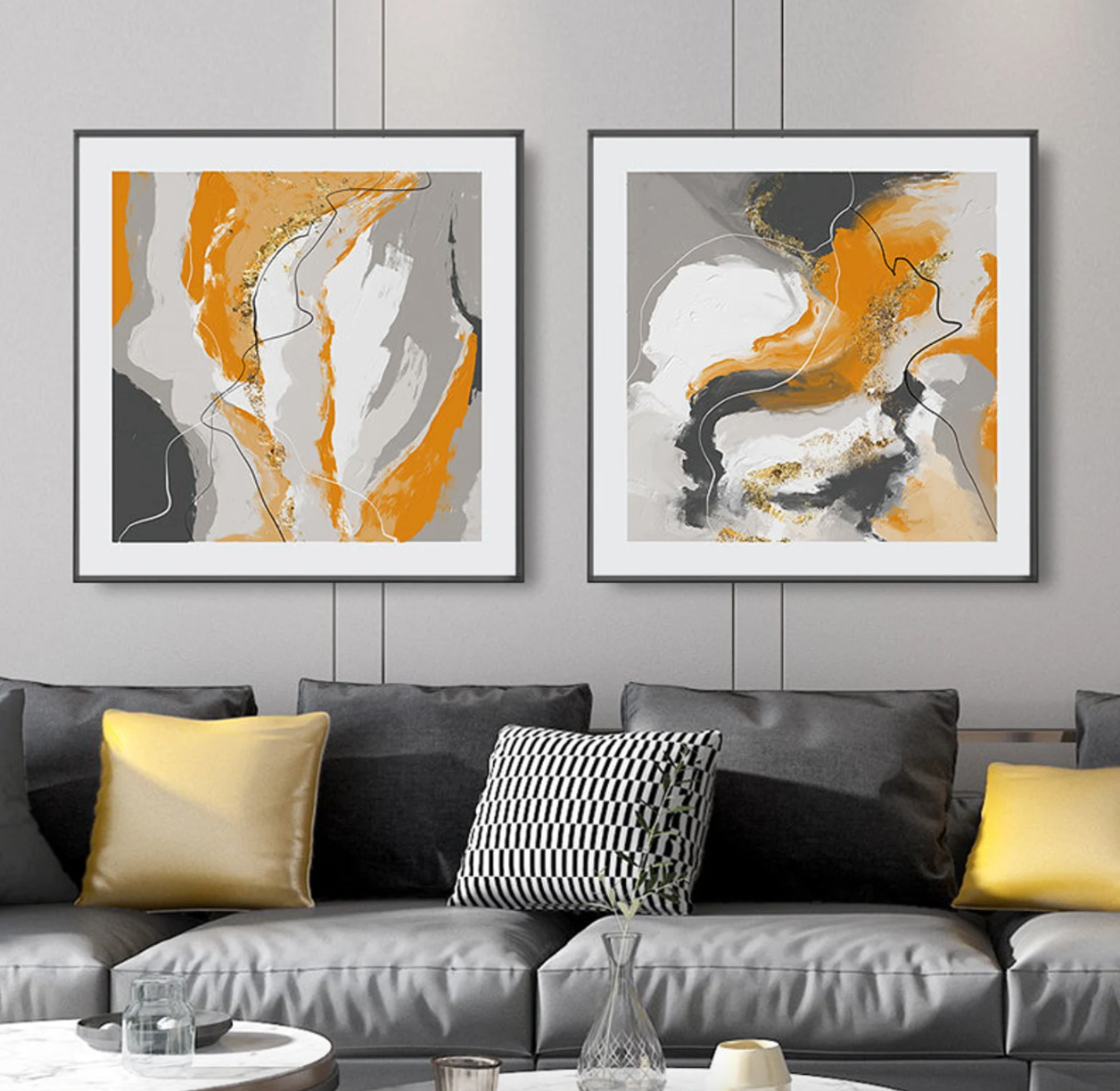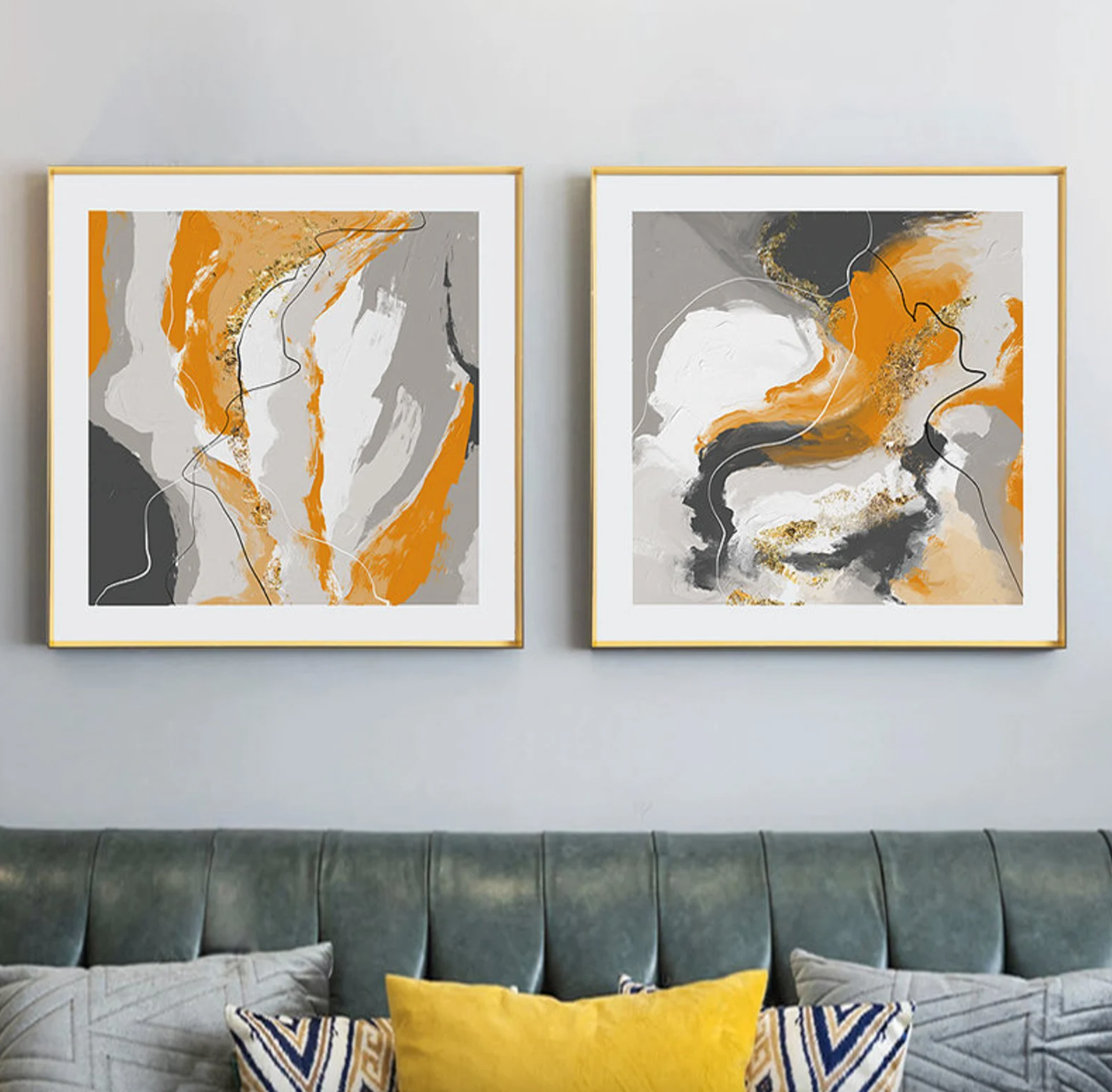 Set de 2 Cuadros Abstractos , Naranaja y grises